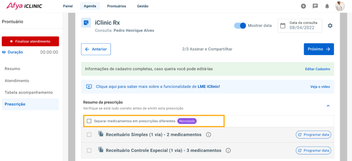 Agora no Afya iClinic, você pode prescrever mais de um medicamento e separar cada um em uma folha diferente, tendo a liberdade para organizar da maneira que mais se adequa a necessidade do paciente.
