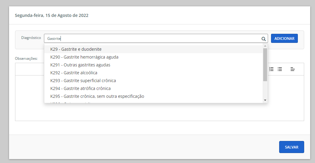 2. Preencha o diagnóstico do seu paciente neste campo durante o atendimento